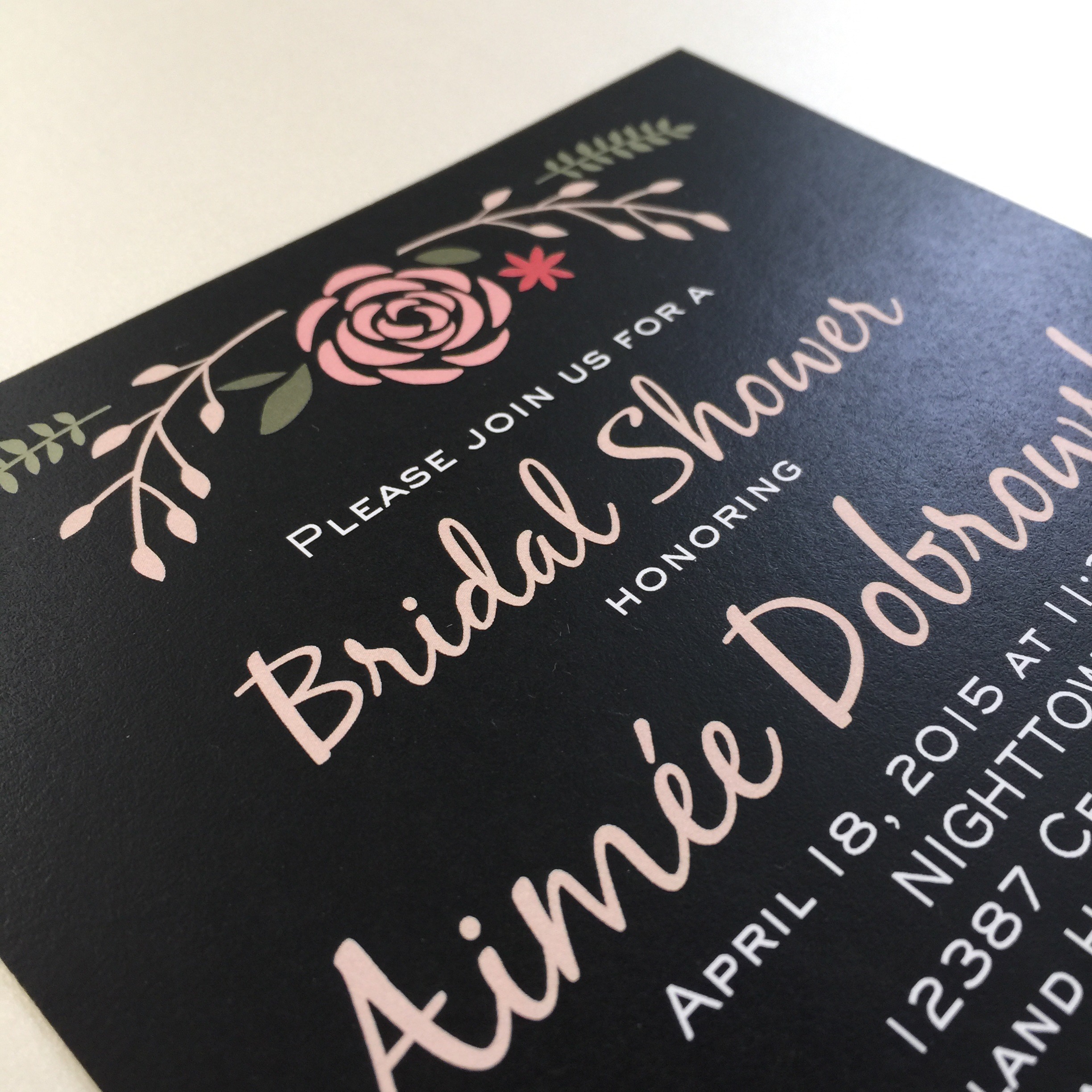 I love weddings! And what is more fun than showering a bride-to-be with love (and presents!) These unique bridal shower invitations were designed for a beautiful bride-to-be, Aimee. Friends and family could not be more excited to celebrate her love story and shower her with gifts before she begins this exciting new chapter of her life!